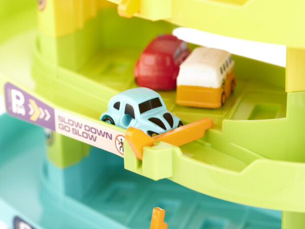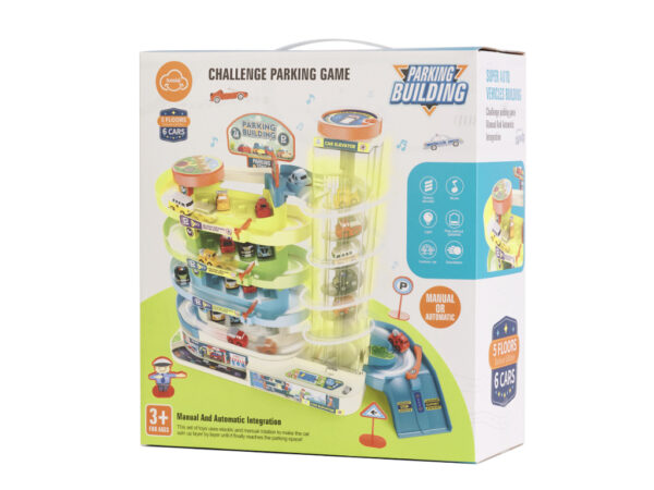 4 aukštų stovėjimo aikštelė su elektriniu liftu ir automobiliais