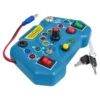 Sukant, spaudžiant, jungiant, perjungiant ar pasukant skirtingus elementus, aktyvuojama LED lemputė, todėl vaikas akimirksniu mato savo veiksmų rezultatą. Žaislas pagamintas iš aukštos kokybės plastiko, neturi aštrių briaunų ir yra visiškai saugus mažiems vaikams. Įvairūs jungikliai, mygtukai, rankenėlės ir spynelė su raktu skatina smulkiosios motorikos, loginio mąstymo bei rankų–akių koordinacijos vystymąsi. Dėl kompaktiško dydžio ir lengvo svorio veiklų lentelė puikiai telpa į vaiko rankas, todėl ją patogu pasiimti į kelionę, pasivaikščiojimą ar naudoti namuose.