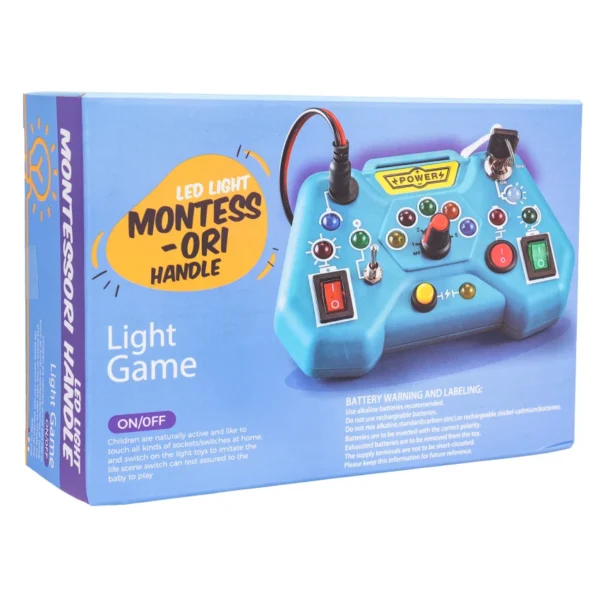 Interaktyvus Montessori žaislas su lemputėmis – tai lavinamasis žaislas, kuris padeda suprasti priežasties ir pasekmės ryšį.