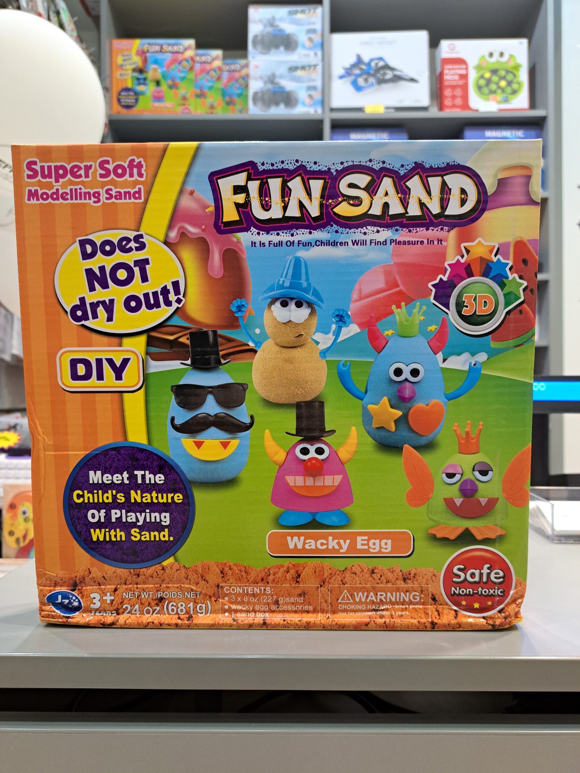 Smėlis yra lipnus, bet nelimpa prie rankų ir paviršių, todėl žaidimas yra švarus ir malonus.