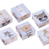 Medinės kaladėlės su gyvūnėliais – kūrybiškas lavinamasis žaislas vaikams.