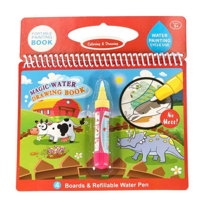 Smagi ir saugi spalvinimo knygelė vaikams, kuri leidžia kurti be jokių dažų, flomasterių ar pieštukų! Norint nuspalvinti paveikslėlius, tereikia specialų rašiklį pripildyti vandeniu. Knygelėje yra 4 skirtingi spalvinimo lapai, kuriuos mažylis gali spalvinti tiek kartų, kiek norės – išdžiūvus piešiniui, puslapiai vėl tampa balti ir paruošti naujiems kūriniams.