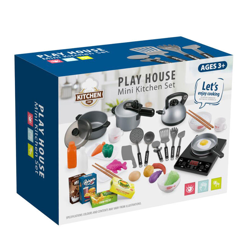 Rinkinyje yra indukcinė kaitlentė su kepimo ir virimo garsais, įvairūs puodai, keptuvės, virtuvės įrankiai bei maisto imitacijos. Visi elementai pagaminti iš aukštos kokybės plastiko, neturi aštrių briaunų, todėl žaidimas yra visiškai saugus. Indukcinė viryklė veikia su 3 x AA 1.5V baterijomis (nepridedamos).
